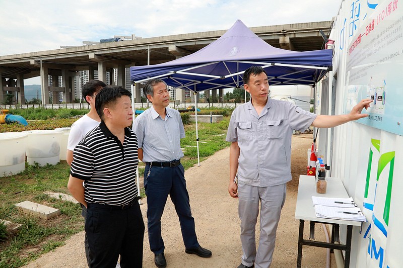 6月12日,陜西環保集團黨委書記、董事長熊良虎在集團西安市江村溝垃圾滲濾液全流程處理中試項目視察調研時指出,大膽探索、科學組織、周密部署,立即開展72小時連續運行試驗,迅速組織召開現場會推廣“正滲透(FO)系統+低溫蒸發結晶(LTEC)系統”處理技術,徹底把垃圾滲濾液這個“最臟的水、最難的水”達標處理好,為1300萬西安市民營造良好的生態環境。集團公司總工程師顏昊一同調研。