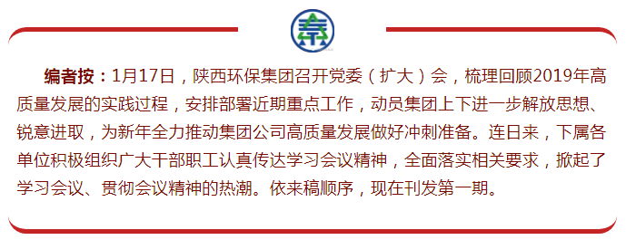 1月19日,環保公司召開專題會議,傳達學習集團公司黨委(擴大)會精神。