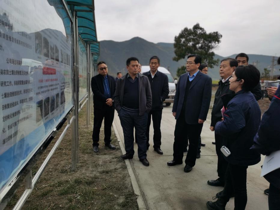 11月4日,生態環境部土壤生態環境司司長蘇克敬、農業農村部科技教育司資源環境處處長李想一行赴中圣公司承擔的寶雞市鳳縣重金屬污染農田土壤治理修復技術應用試點項目調研指導工作。省生態環境廳黨組成員、副廳長姚曉軍,寶雞市委常委、副市長時鎮一同調研。