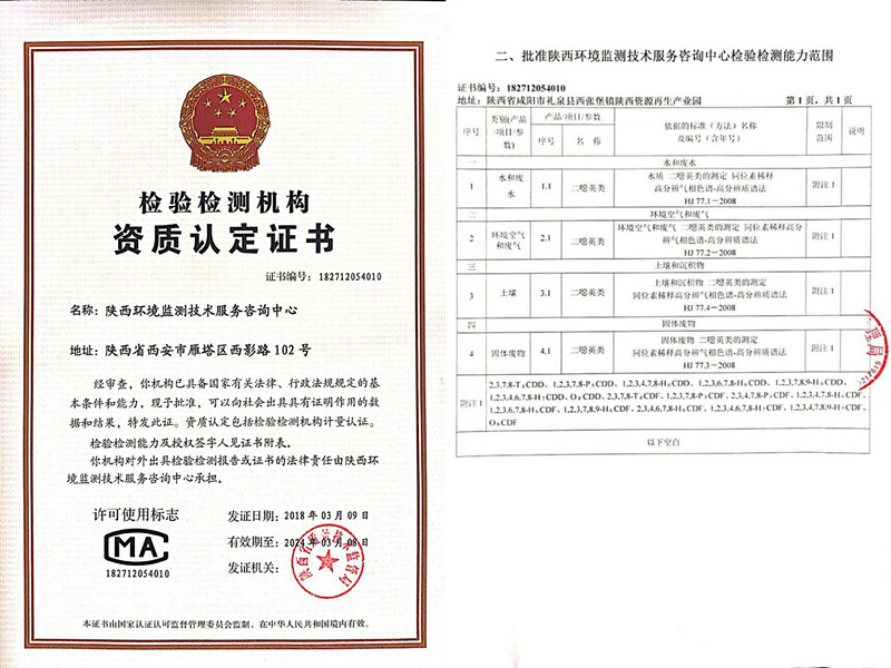 近日,監測中心二噁英實驗室經西安市市場監督管理局資質認定評審組嚴格審核,順利取得二噁英類CMA檢驗檢測資質,實現二噁英類檢測項目全覆蓋,正式成為西北地區首家從事二噁英環境監測的社會化專業檢測機構。