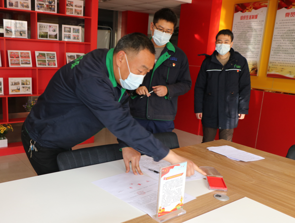 黨員羅洪斌帶領預備黨員及入黨積極分子王金博、秦偉、趙衛強、呂曉武、周敏、陳蘭等在職工食堂負責維持秩序及日常物資發放工作;才遞交入黨申請書不久的閆文平也加入了疫情防控工作中,統計生產物資、疫情防控物資數量,編制《醫療廢物收集轉運管理方案》,全力完成年末各項任務。